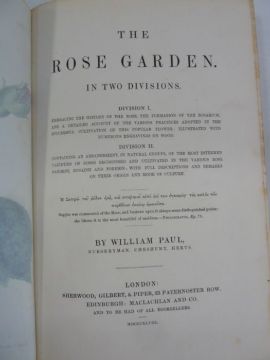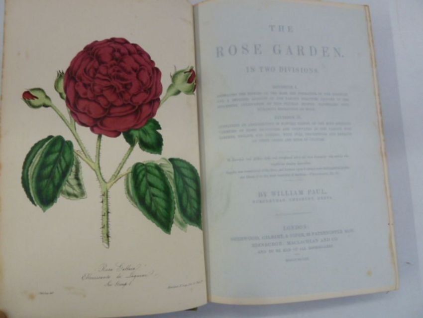 Paul, WilliamNurseryman, Cheshunt, Herts"The Rose Garden in Two Divisions ...", Sherwood, Gilbert & Piper 1848, coloured frontis and 12 colour plates, all with tissue guards, green blindstamped original publishers cloth, gilt titles to the front board and backstrip, backstrip faded and corners bumped but the contents clean and bright