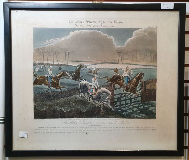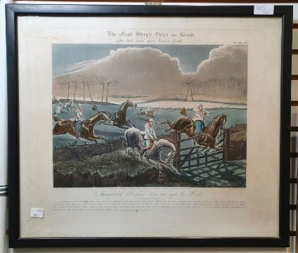 After Henry Alken Coloured engravings"The First Steeple Chase on Record", plates I, II, III and IV (4)