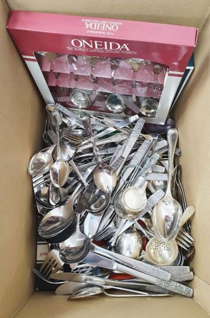 Electroplated wares and stainless steel flatware to include Viners cutlery, etc (1 box)