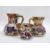 Three Masons ironstone hydra jugs in sizes, 19th century, printed blue marks, printed and painted in the Imari palette with flowering shrubs, each with snake handle, largest 12.5cm high (3)