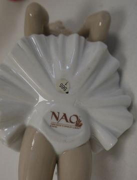Collection of Spanish porcelain figures, printed and impressed marks, including a Nao figure of a Flamenco dancer (29.5cm high), another of a seated girl and a bird, a girl ballerina and two other figures, one of a water carrier and another woman with a dog Condition ReportNo obvious signs of damage or repair