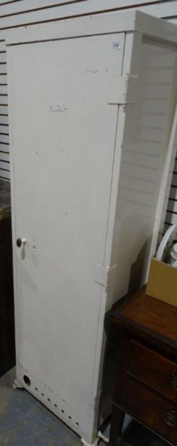 White painted metal food smoking cabinet, 56cm x 187cm