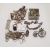 Silver charm bracelet, a silver gate-pattern bracelet, a silver ingot pendant, a silver pennyfarthing pendant, a silver chick in egg pendant and other silver items