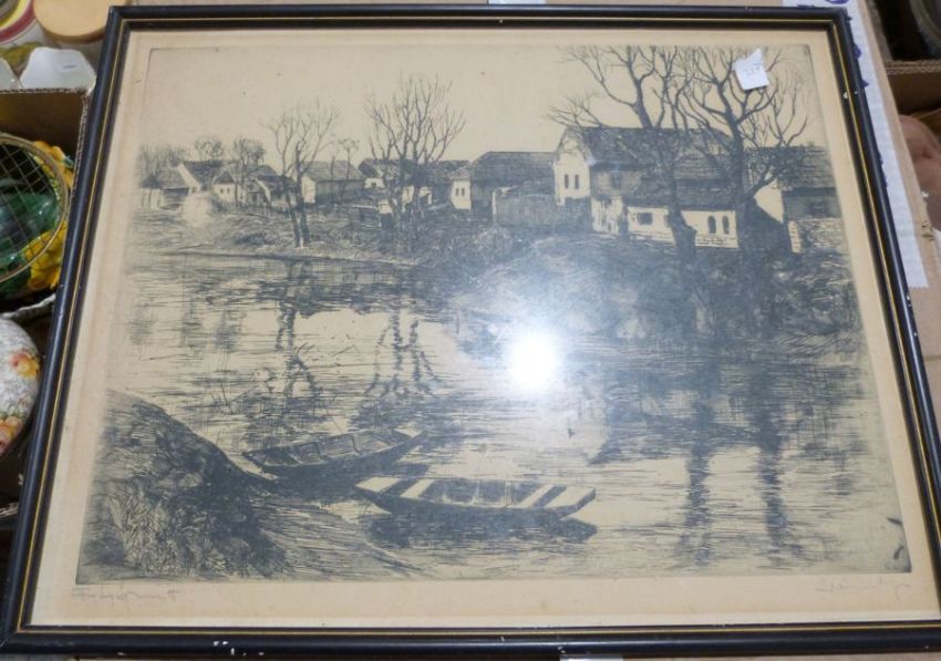 After Robert BailliePrint"Berkhamsted", framedEtchingKneo Kalman, cowboy, indistinctly signed lower right together with further paintings and prints (7)