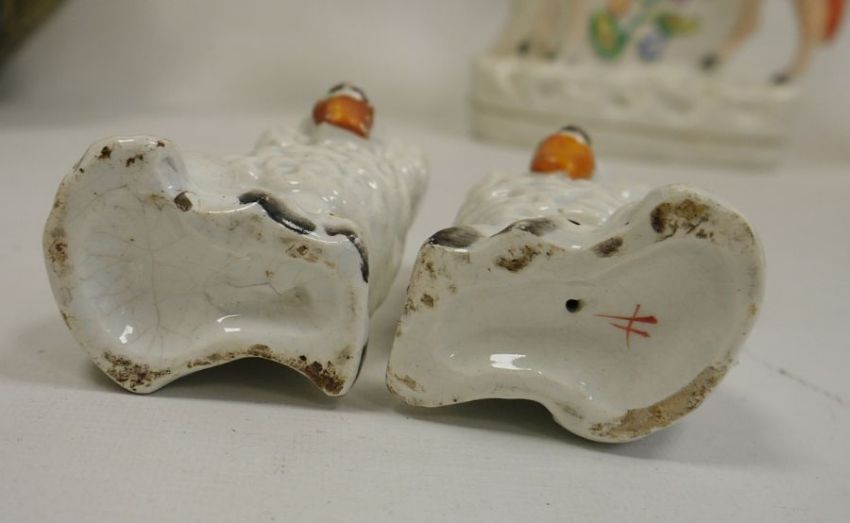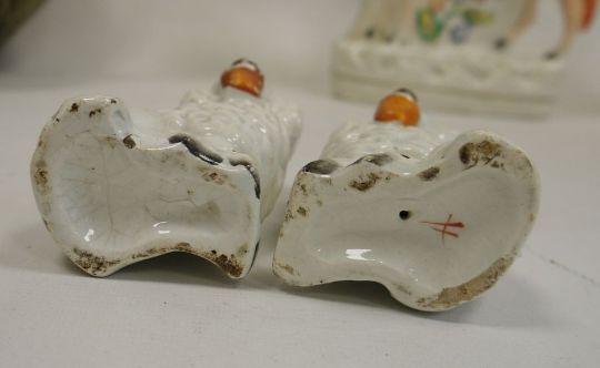 Collection of assorted pottery, mid 19th century and later, printed and impressed marks, including a large Celtic ceramic green glazed jug (27.5cm high), a Poole pottery Aegean pattern grey glazed circular shallow bowl (26.5cm diameter), another smaller glazed in orange and turquoise with an abstract flower design, two Staffordshire pottery petal-shaped dishes, an Aviemore pottery vase, various Staffordshire pottery figures, a pair of spaniels, a Mason's ironstone grasshopper-pattern plate and other items