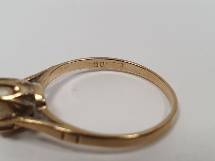 9ct gold and shell cameo ring and a gold and cultured pearl ring, approx 5g gross (2)