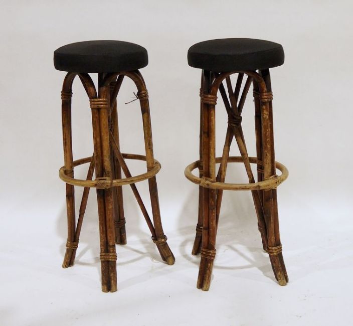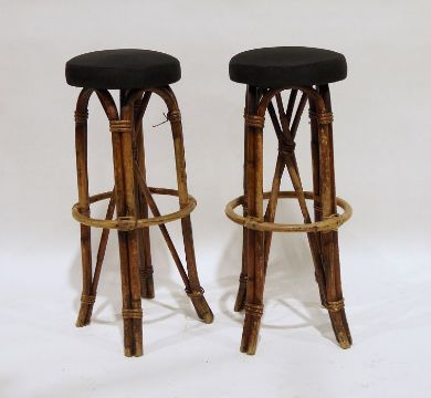 Two bentwood breakfast bar stools with modern upholstered seats (2)