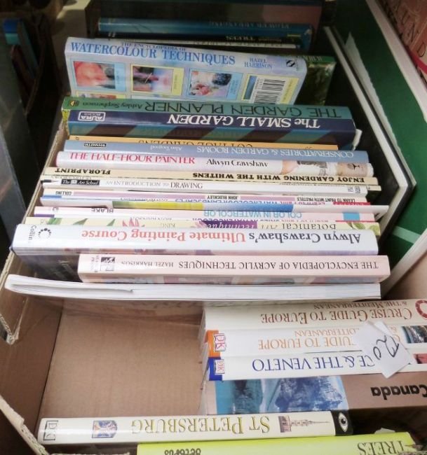 Four boxes of various books, prints and paintings (4 boxes)