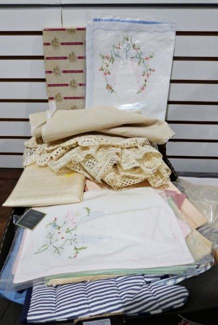 3 boxes of assorted Linen to include Debenhams, House of Frazer, Country Scene etc