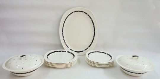 Midwinter Stylecraft part dinner service, white ground with black spots (15)