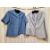 Red, black and brown double-breasted jacket, a pair of yellow linen full-length trousers, a Mundi skirt, a blue linen collarless jacket by Jaeger with short sleeves, a grey cotton jacket, an Alexon black jacket with white buttons, a Delmond striped jacket with matching tee shirt, a fine knit top, a frilled shirt, a raw silk shirt and a full-length knitted cardigan (11)