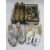 Nine pairs of womens vintage shoes including pair ballet cream silk, blue heels, a silver clutch bag and assorted vintage shoe trees made of wood and metal (9)