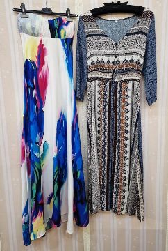 Redoute shift dress, Mondrian style in black and red, a white and black squared mini dress, full skirt, a Redoute wool and faux leather dress, side zip fastening to the front, brass rivet detail to the collar, a sequinned polo-neck top, a cotton full-length sleeveless dress labelled Marc Angelo, a velvet full-length evening dress, a black chiffon evening dress labelled Roman Originals, a black laced mini dress labelled Cotton Candy, a sequined mini dress labelled Vera & Lucy and two other dresses (11)