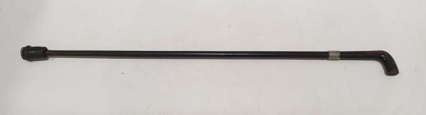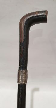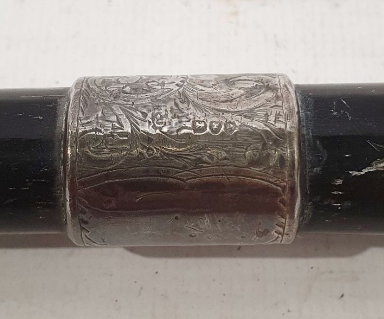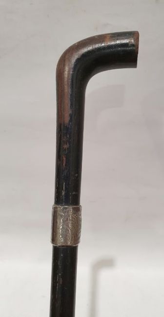 Wooden walking stick with silver collar and foliate engraving