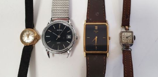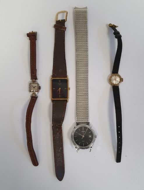 Lady's 9ct gold Limit wristwatch with baton numerals, a lady's vintage white metal wristwatch and two gent's wristwatches (4)