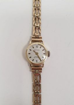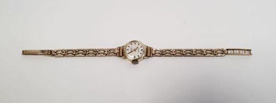 Lady’s Polaris 9ct gold wristwatch with circular champagne face, on triple-gate bar bracelet, 11.2g including movement