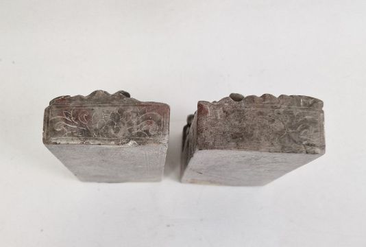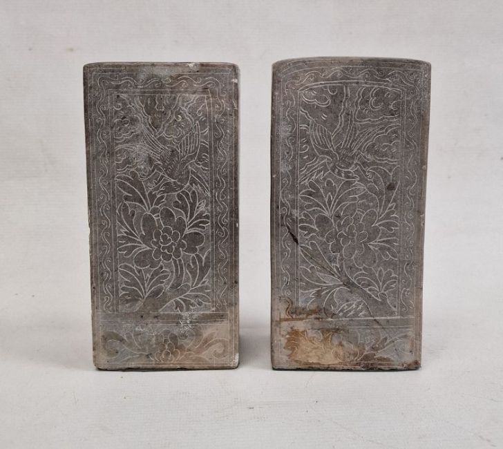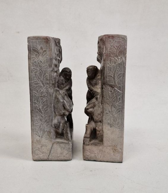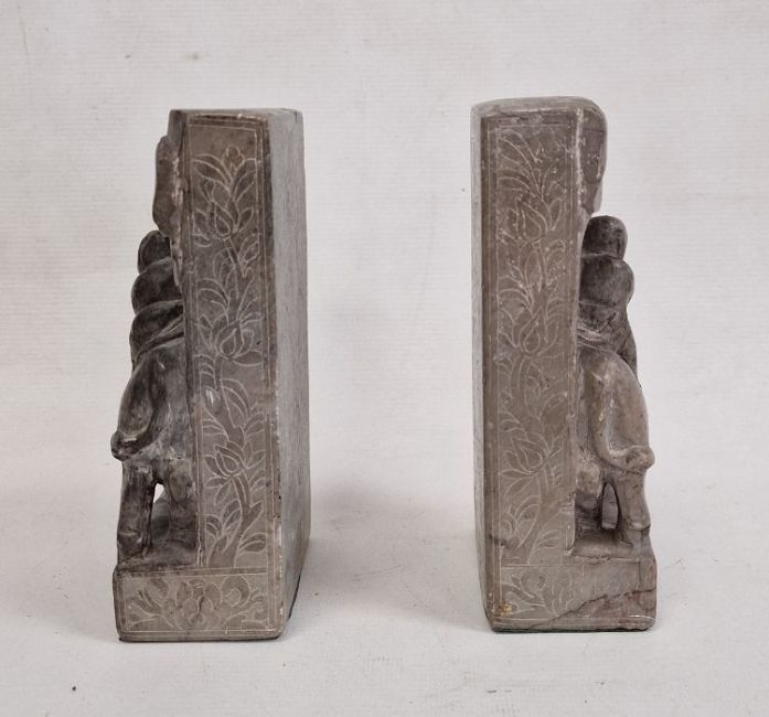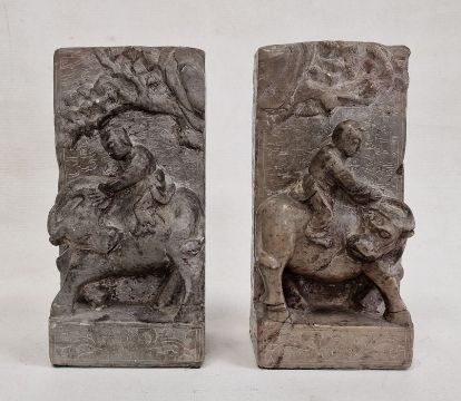 20th century Chinese-style bookends of carved polished stone with figures riding bull