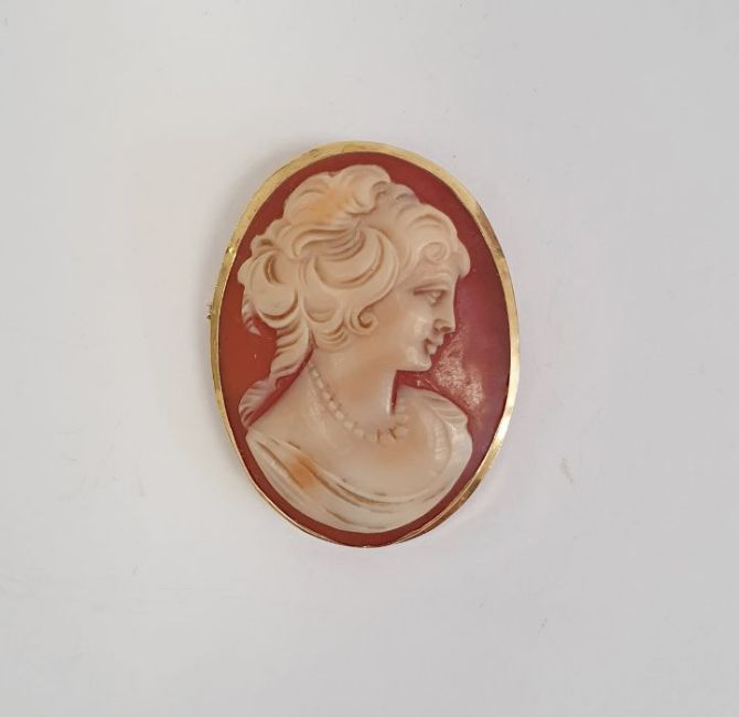 18ct gold-mounted cameo brooch, head and shoulders female figure