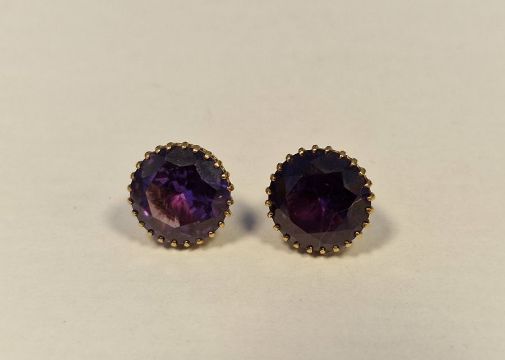 Pair gold-coloured metal and alexandrite-coloured stone set large stud earrings