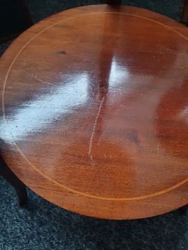 20th century walnut serpentine-fronted two-drawer bedside chest on cabriole legs, a two-tier mahogany aspidistra stand and a folding card table (3) Condition ReportBedside table with surface scratches, scuff and knocks. Some splits to the veneer, some loss to the veneer.  Fading and discolouration.Jardiniere  stand - surface scratches, scuff and knocks. Fading and discolouration.Card table - surface scratches, scuff and knocks. fading to cloth. General wear and tear.