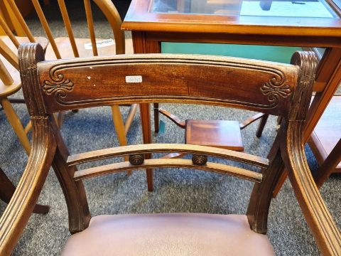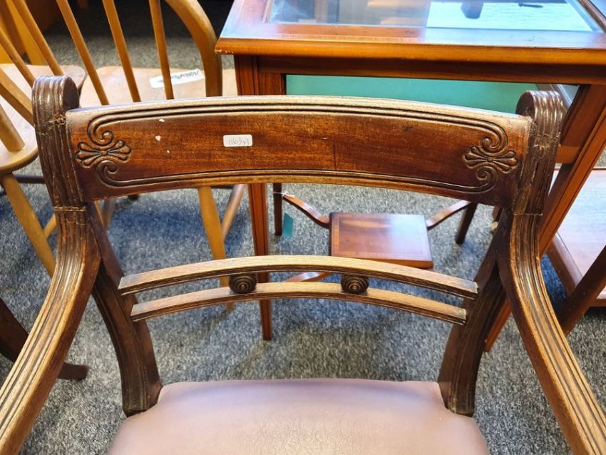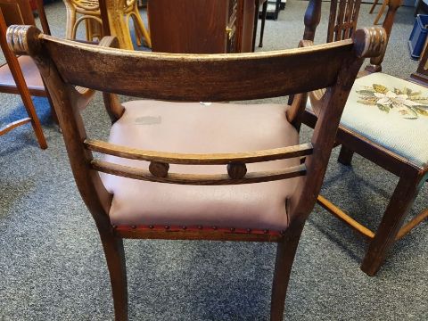 Pair of Regency mahogany carver chairs on reeded sabre front legs and a Georgian corner chair with grospoint woolwork seat (3) Condition ReportPhotos added