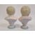 Pair German bisque porcelain pedestal busts of babies, one with happy face, one with sad face, each on gilt pink striped and turquoise socle base, 15.5cm high (2)