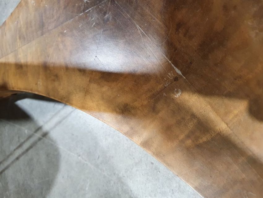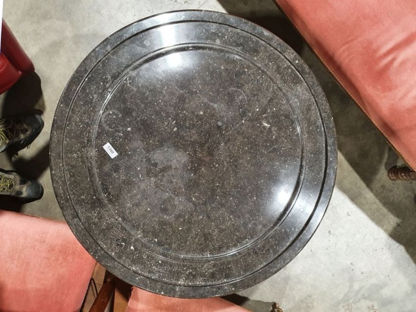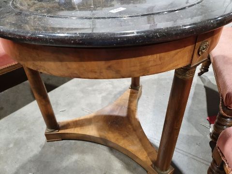 Surface scratches to the marble top. Surface scratches, scuffs and knocks to the base. Areas of fading and discolouration. General wear and tear.