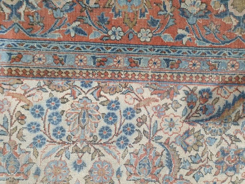 Persian herati-type rug, the cream ground with allover foliate decoration to the central field, on a stepped foliate border, 305cm x 210cmCondition Reportphotos added