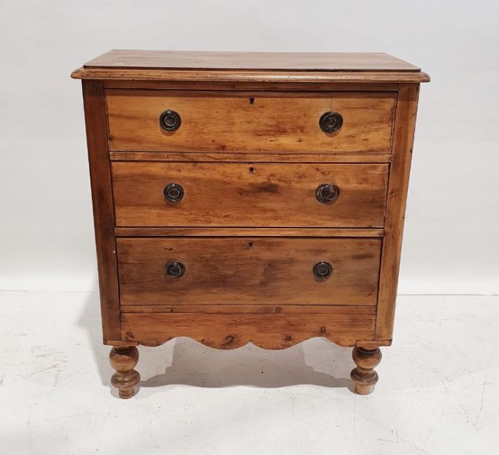 20th century mahogany chest of three long drawers, on bun feet, 95cm x 83cm x 42cm