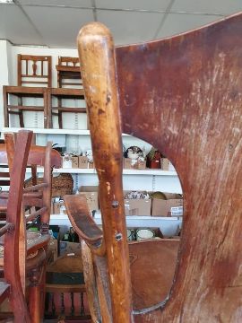 Surface scratches, scuffs and knocks to the wood, appears to be some minor splits in areas, fading and discolouration in areas, accretion and what looks like mildew in places. Seat is slightly raised at the back. General wear and tear, see photos.