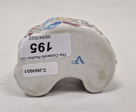 Mid 18th century Veuve Perrin enamel snuff box with previously hinged lid now separate, with courting couple and naval scene marked VP to base 7.5 x 5 x 3.5 cm