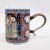 Chinese mug in famille rose decoration, figures in landscape with horn handle