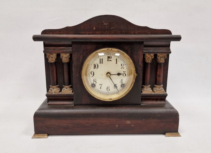 20th century mantel clock with Arabic numerals to the dial, marked 'Made by The Sessions Clock Co Forestville Conn USA'