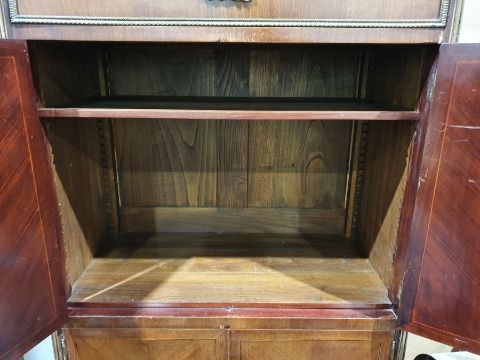 Continental Empire-style cabinet, the marble top above single drawer and two pair of cupboard doors, on square section tapering supports capped in brass, 88cm x 160cm Condition ReportExtra photos added
