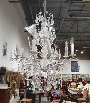 20th century eight branch glass drop chandelier