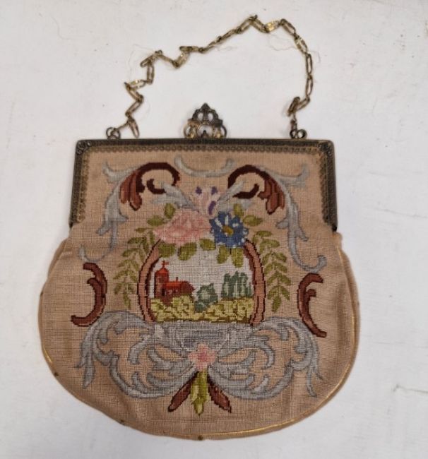 Lady's evening purse and a twin-handled tile-top tray (2)