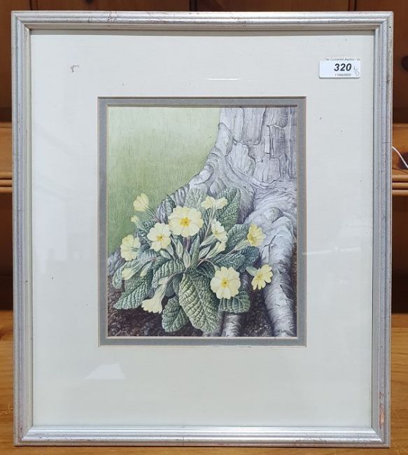 Pauline DeanWatercolourStudy of primroses, signed lower right (17 x 20 cm)Italian school Watercolour Study of Bay of Naples by moonlight (28 x 23 cm)one further by the same hand and two prints (5)