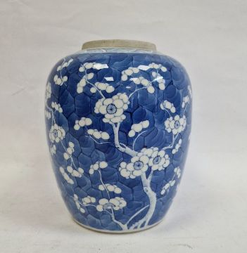 Chinese prunus blossom decorated jar with six-character Kangxi mark to baseCondition ReportLight surface marks, accretions. Discolouration to rim. Small indent to the base which is smooth so probably from the manufacturing process.  General wear and tear.  See photos.