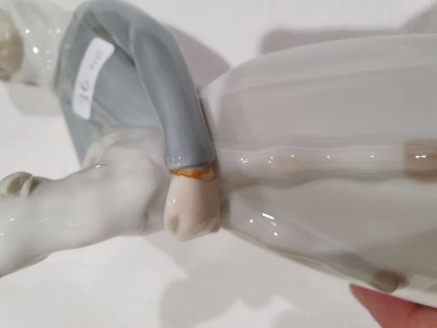 Light surface marks and accretions. Angel boy has a broken wing, Lambs have chips to the ears, one bird has a chip to the tail feather, one figure with damage and repair to the arm. General wear and tear, see photos.