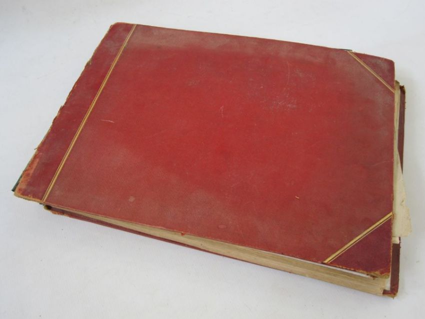 Victorian scrap album containing Victorian scraps, greeting cards to include Christmas and New Year, programmes, photographs and prints (in poor condition)