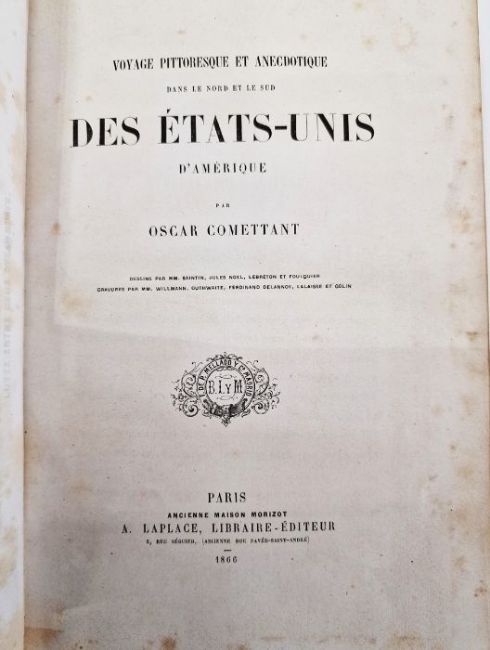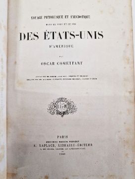 Comettant Oscar "Voyage Pittoresque et Anecdotique dans le Nord et le Sud des Etats-Unis d'Amerique"  Paris 1866frontis with tissue guard, 15 plates with tissue guard throughout, foxed throughout, three coloured plates 'Camp Indie', Lincoln Recevant...' and 'Pony Post' -   two volumes, watered silk end papers, contemporary brown cloth, blind stamped with gilt decorations with Enault Lewis "L'Amerique Central et Meridionale ..." ParisF. de P. Mellado et Cie 1867,  frontis with tissue guard, 17 plates with tissue guards, two coloured plates both titles ' Types Mexicains' , slight foxing throughout, blind stamped decoration to brown cloth , both volumes aeg (2)Condition ReportComettant ................15 plates with tissue guard throughout, foxed throughout, three coloured plates 'Camp Indie', Lincoln Recevant...' and 'Pony Post'Enault........17 plates with tissue guards, two coloured plates both titled ' Types Mexicains' , slight foxing throughout