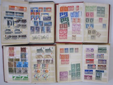 GB & British Empire:  Box of various, inc. an album, folders, pages and blocks/loose in registered envelopes and 15 stockbooks with mainly GB stamps, mint and used, defin. and commem.  GB, FDC (c100) and decimal face value seen Condition ReportPlease see further information