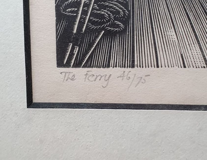 George MackleyWoodcut"The Ferry", 46/75, signed and titled in pencil in margin, framed, approx. 12.5cm x 15cm