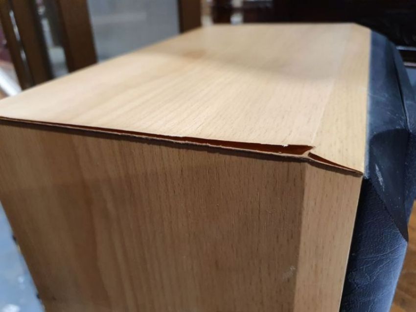 Some scratches, wood effect coating on speakers is peeling and with some loss. Unable to say whether in working order.