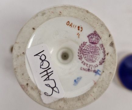 Early 20th century Minton china vase and cover with gilt finial, shouldered with pair raised gilt handles, handpainted by James Edwin Dean with sailling barges and windmill to a royal blue ground, on circular pedestal foot, 16cm high approx.