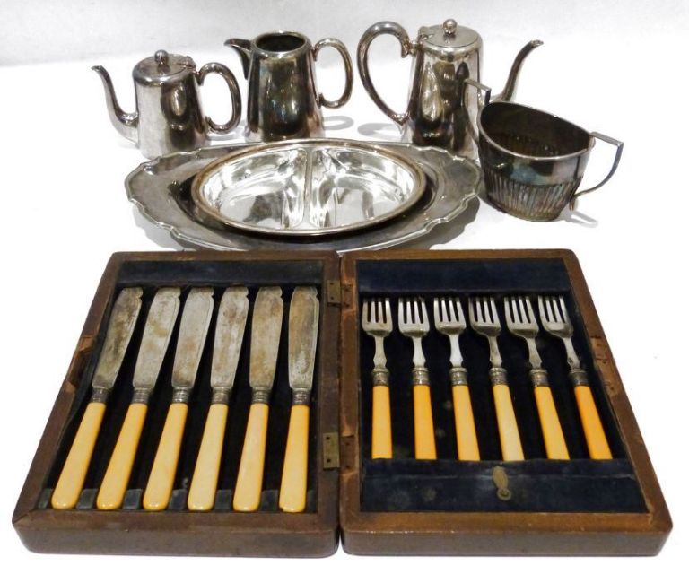 Assorted electroplated wares to include teapots, tureens, flatware, etc (2 boxes)