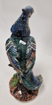 Royal Doulton china figure 'Christine' HN2792 and continental pottery large model of exotic pheasant on branch, 38cm high (2)