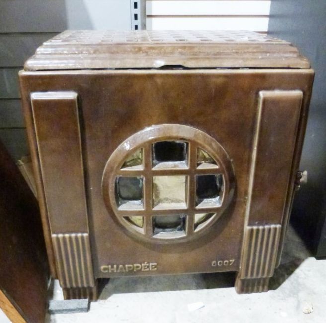French Art Deco Chappee 8007 cast iron and enamel woodburning stove