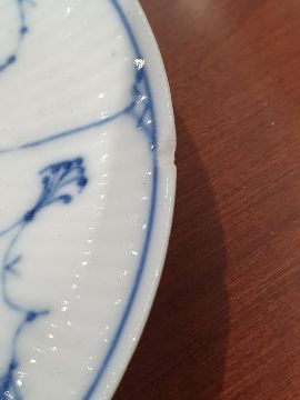 Royal Copenhagen half lace pattern teapot and a similarly decorated saucer by Bing and Grondahl (2)Condition ReportHandle of teapot with damage and old repair. Saucer with chips to rim and base.