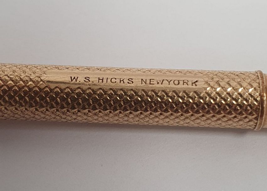 W S Hicks New York gold-coloured metal propelling pencil, a silver and gold-coloured metal necklace and pair of earrings, a 9ct gold heart-pattern ring and other jewellery items
